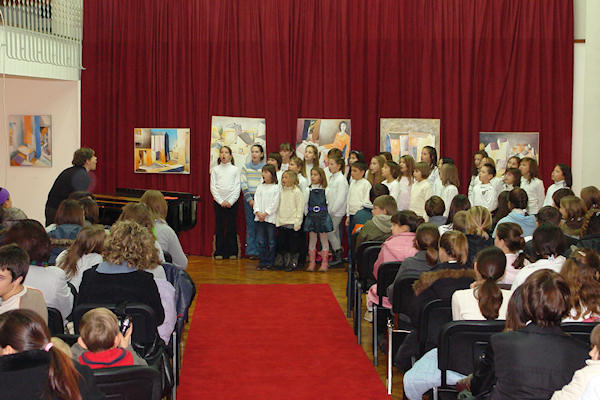 Metković, 15.12.2009. - Sinoć je u Galeriji GKS-a održan tradicionalni Božićni koncert dječjih zborova na kojem su nastupili Mali i Veliki zbor OŠ Don M. Pavlinovića iz Metkovića, Zbor OŠ Vladimira Nazora iz Ploča, zborovi osnovnih glazbenih škola Metković i Ploče te Tonća Šiljeg iz OŠ Don M. Pavlinovića kao solist na glasoviru.