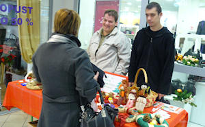 Metković, 19.12.2009. - Već uobičajeno za ovaj dio godine u TC Mercator upriličena je prigodna prodaja različitih predmeta koje su uz pomoć defektologa i terapeuta s puno ljubavi i topline u sklopu psihosocijalne rehabilitacije izradili štićenici s posebnim potrebama Doma za starije i nemoćne osobe i tjelesno ili mentalno oštećene osobe Metković.