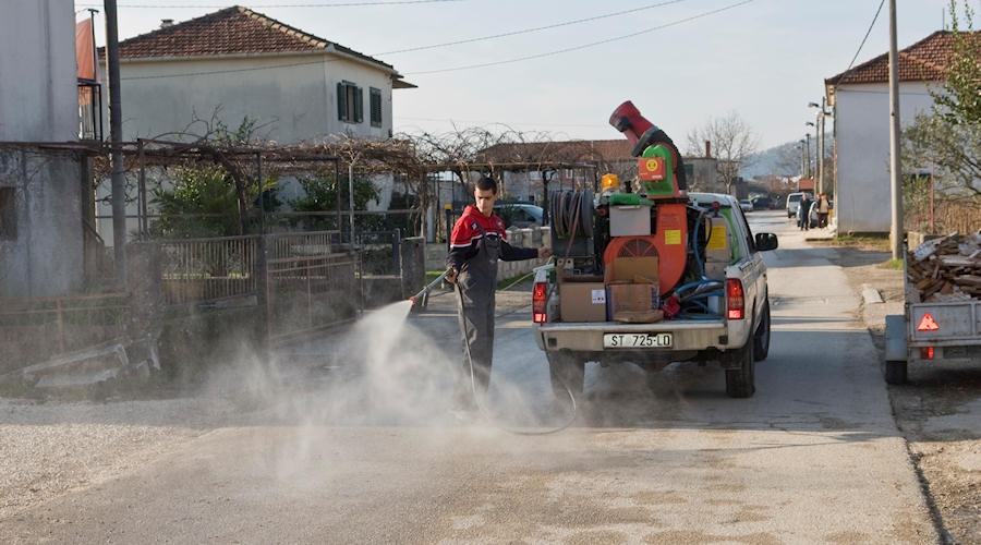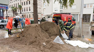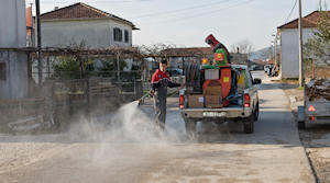 16.1.2010. - Kako su nekad poplavljene ulice uglavnom suhe tvrtka 'Cian' iz Splita započela je poslove oko dezinfekcije javnih površina. Zatekli smo ih kod crkve Sv. Nikole, a kako je s njima bio i dr. Miljenko Ljubić zapitali smo ga čime građani mogu dezinficirati svoje poplavljene domove. Rekao nam je da se u ljekarnama može nabaviti više sredstava toga tipa kao što su Izosan-G i slični.
