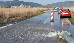 16.1.2010. - Iako na nekim mjestima u Ulici neretvanskih gusara na kolniku ima još vode do svih se kuća može doći osobnim automobilom. Mi smo se uputili cestom prema Vidu na kojoj jaka pumpa još uvijek prepumpava vodu s desne strane ceste na lijevu. Vodostaj je vidno opao pa smo produžili dalje i skrenuli na Glibušu.