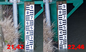 9.1.2010. - Vodomjer na velikoj rivi u Metkoviću najposjećenije je mjesto ovih dana. Samo dva centimetra nedostajala su danas oko 17 sati do vodostaja kada se proglašavaju izvanredne mjere obrane od poplava. No ti centimetri puno ne znače stanovnicima desne strane grada kojima je voda od sinoć porasla za petnaestak centimetara.