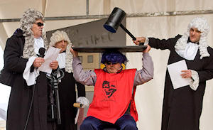 16.2.2010. - Zbog lošega vremena te činjenice da je gradska pozornica oštećena u noćašnjem požaru suđenje Marku Krnjevalu obavit će se danas u Gradskoj športskoj dvorani s početkom u 18 sati. Paljenje pričuvnoga Marka bit će na Maloj rivi nakon presude.