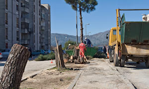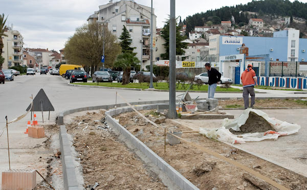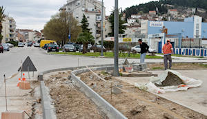 30.3.2010. - Na raskrižju Športske i Ulice Ante Starčevića, na mjestu gdje su nedavno posječeni borovi započelo je uređenje nogostupa uz koji se će potom zasaditi nova zelena površina.