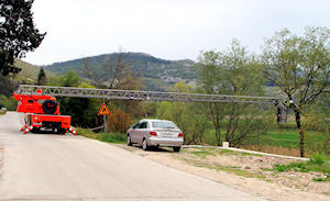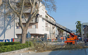 10.4.2010. - Jutros je nastavljen posao na kresanju grana platana ispred Osnovne škole Stjepana Radića. Djelatnicima JVP Metković ostalo je samo jedno stablo, no ono je najveće od svih dosadašnjih i nalazi se uz samu stambenu zgradu. Ipak, do podne posao bi trebao biti gotov pa će se ulicom opet moći automobilom.