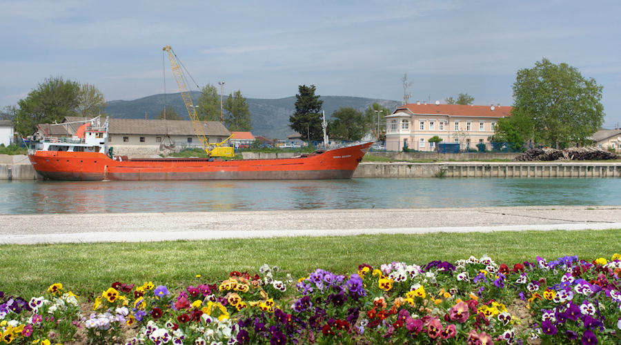 23.4.2010. - Jučer je bio lijep dan kojega je još više uljepšao prizor iz metkovske luke. Prvi put na Neretvi vidjeli smo brod Gospa Sniježna koji se, onako, živo opituran dobro uklopio u cvjetnjak na drugoj strani Neretve. Ugođaj je malo pokvarilo krivo napisano ime koje bi trebalo biti Gospa Snježna, ali tko još mari za pravopis.