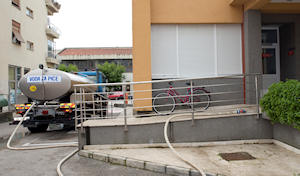 17.5.2010. - Jutros smo pred Odjelom za hemodijalizu Doma zdravlja Metković zatekli autocisternu koja je tamo dovezla vodu s izvorišta Prud jer je doljanska ponovno boćata.