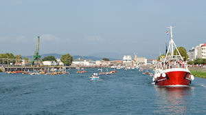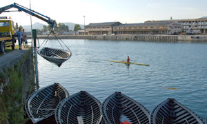 Metković, 13.8.2010. - Posljednje lađe danas predvečer spuštene su u Neretvu podno Lučkoga mosta. Sutra se tamo očekuje prava vreva jer start u Metkoviću je sublimat cijeloga Maratona.