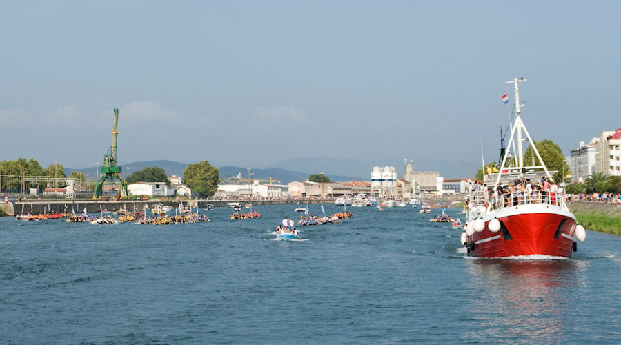 Metković, 17.8.2010. - Kasnopopodnevno sunce jučer je istaknulo bjelinu ribarice Škrila privezane uz Veliku rivu na modroj Neretvi. Samo dva dana ranije tamo je sve vrvjelo brodovima, lađama i ljudima.