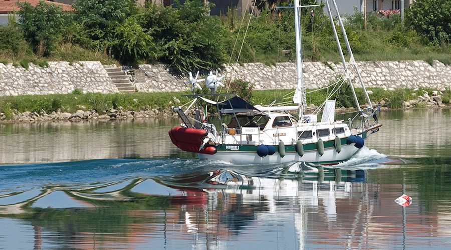 Metković, 2.8.2010. - Današnje lijepo vrijeme iskoristila je posada ove talijanske jahte za učinit đir Neretvom. Mi smo ih u objektiv uhvatili pred metkovskom lukom.