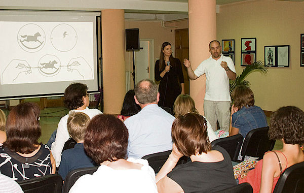 Metković, 13.8.2010. - U atriju GKS-a Metković održana je prezentacija s izložbom pod nazivom Što je animacija i Mat the Wad crtići animatora Matthewa A. Ducharmea. Tijekom prezentacije prikazano je nekoliko kratkih animiranih filmova s različitim temama, a uz prevođenje supruge Lane Bagur Ducharme o animaciji i njezinu nastanku, kao i tehnikama koje se koriste, govorio je sam autor.