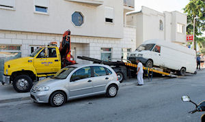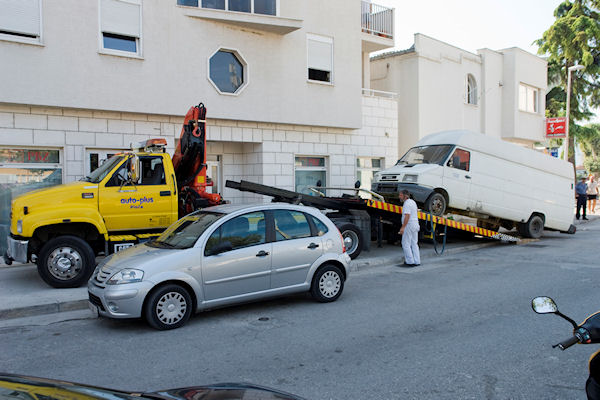 Metković, 13.8.2010. - Tijekom nedavno provedene akcije uklanjanja nepropisno parkiranih automobila i olupina komunalni redari su s gradskih ulica uklonili neregistriran kombi i stari kamion.