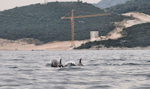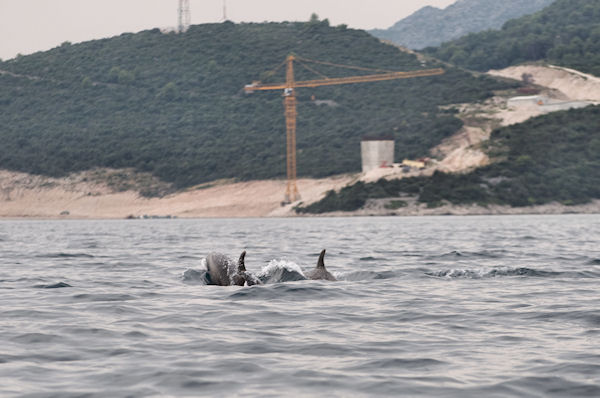Metković, 20.8.2010. - Velika obitelj dupina, očevidci su ih nabrojali devet, kao da je krenula u inspekciju radova na Pelješkome mostu. Ove fotografije snimljene u Neretvanskom kanalu dobili smo od posjetitelja naših stranica, a posebno je zanimljivo da je u kadar uspio uhvatiti mamu i bebu dupina.
