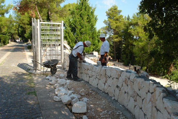 Metković, 4.8.2010. - Prije nekoliko dana nastavljeni su radovi na ulazu u Gradsko groblje Sv. Ivana Nepomuka. Trenutno su u tijeku radovi na izgradnji zida s desne strane ulaza koji bi u budućnosti trebao u potpunosti ograditi dio groblja uz prilaznu cestu sa sjeverne strane Predolca.
