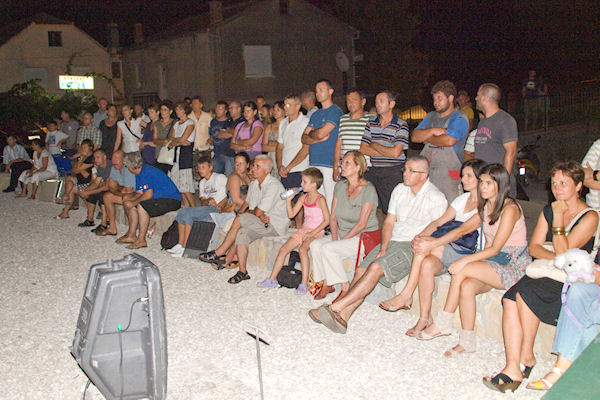 Vid, 6.8.2010. - U sklopu proslave Gospe Snježne sinoć je pred Arheološkim muzejom Narona u Vidu održana projekcija videomaterijala snimljenog tijekom nedavnoga pothvata Tragom pradjedova kada su lađari veslali od Metkovića do talijanskoga Termolija. Autori videozapisa su Milojko Glasović i Branko Markota.