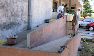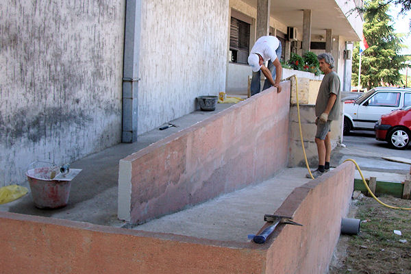 Metković, 21.8.2010. - Ispred PP Metković u tijeku su završni radovi na izgradnji prilazne rampe koja će omogućiti pristup osobama u invalidskim kolicima.