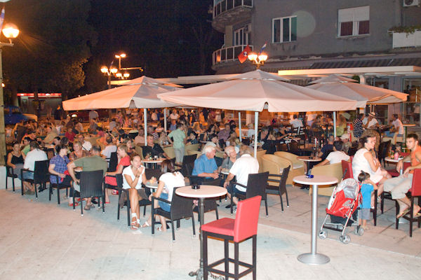 Metković, 13.8.2010. - Na Trgu kralja Tomislava večeras je organizirana tzv. Ribarska noć koja je privukla dosta svijeta. Na roštilju su se pekle srdele i ćevapi pa se moglo birati između ta dva dijametralno suprotna specijaliteta s obiju strana povijesne granice nad Metkovićom. Izgleda da su najviše uživala djeca kojima je prostor trga idealan za igranje dok se roditelji opuštaju.
