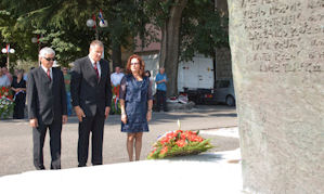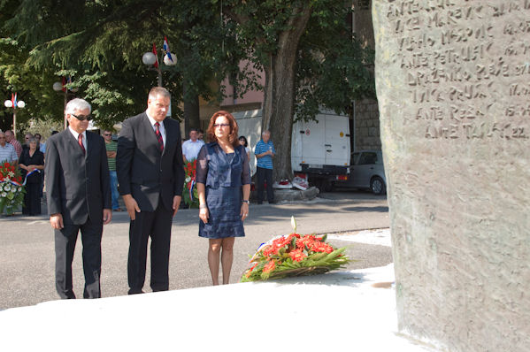 Metković, 4.8.2010. - U povodu Dana pobjede i domovinske zahvalnosti jutros su položeni vijenci i upaljene svijeće pred Središnjim križem na Gradskom groblju Sv. Ivana te ispred Spomenika poginulim metkovskim braniteljima u Domovinskom ratu.