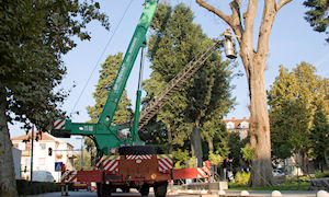 15.9.2010. - Za razliku od ostalih stabala stogodišnji brijest u gradskom parku nije se oporavio nakon što su mu bile potkresane grane. Nakon godinu i pol stablo se osušilo pa su ga danas djelatnici JVP Metković ispilili uz pomoć velike građevinske dizalice. Na njegovu mjestu posadit će se novo stablo.