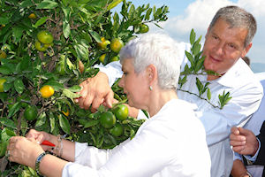 19.9.2010. - Ubravši nekoliko plodova mandarina predsjednica Hrvatske vlade Jadranka Kosor simbolično je označila početak berbe mandarina u dolini Neretve.