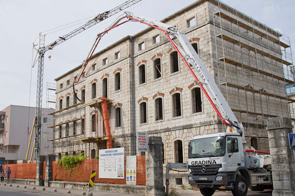 10.9.2010. - Radnici metkovske tvrtke MGA danas su na zaradi stare Vage započeli s izlijevanjem AB ploče drugoga kata, nakon čega ostaje još samo ona na trećem katu. Koliko smo doznali krovište će biti drveno s nekom čeličnim elementima. U međuvremenu zgrada je opasana skelom koja će služiti za sanaciju fasade i montažu otvora.