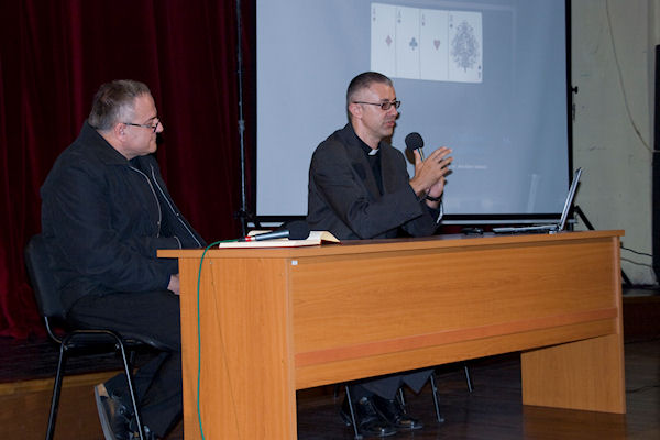 30.10.2010. - Metkovske župe Sv. Ilije i Sv. Nikole u suradnji s Udrugom Narenta sinoć su u metkovskom GKS-u za mlade organizirale predavanje Kockanje? - Siguran gubitak! na kojem je kao predavač nastupio mr. sc. don Boris Vidović, profesor psihologije na KBF-u u Splitu.