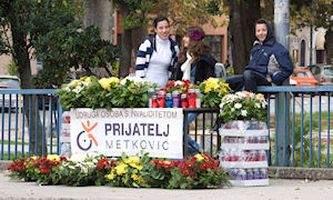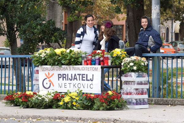 31.10.2010. - Sutra su Svi sveti, a u utorak dan sjećanja na naše mrtve. Stoga se na više mjesta po gradu mogu naći priručni štandovi kao što je ovaj na kojem članovi i volonteri Udruge osoba s invaliditetom iz Metkovića prodaju svijeće i cvjetne aranžmane koje su sami izradili. Dio je to akcije Neretvansko srce kojom se nastoji pomoći članovima Udruge i koja bi mogla prerasti u Fond za pomoć potrebnima u dolini Neretve.
