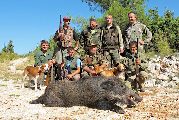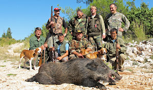 12.10.2010. - Prošle subote skupina lovaca iz LD Liska krenula je u lov na zajedničko lovište IXX/117 ne znajući da će se iz njega vratiti s pravim trofejem - preko 150 kg teškom divljom svinjom.