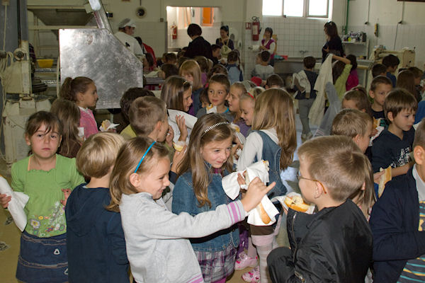 19.10.2010. - U sklopu obilježavanja Dana kruha predškolci Dječjeg centra Metković sa svojim tetama posjetili su pekarnicu tvrtke Metkovka gdje su ih njeni djelatnici upoznali s procesom proizvodnje kruha i peciva. Naravno, djeci su ponudili i da kušaju različite pekarske proizvode.