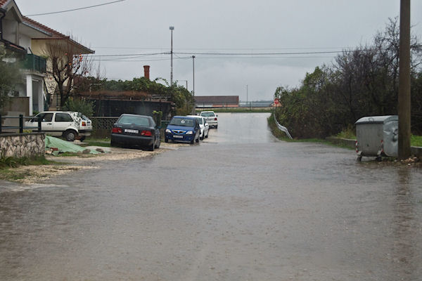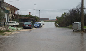 Metković, 23.11.2010. - U protekla 24 sata (od 7 jučer ujutro do 7 sati danas) na području Metkovića palo je 70 litara kiše po metru četvornome. Mi smo jutros djelom obišli grad i vidjeli da problema s vodom ima na uobičajenim mjestima, kao što je ovo na početku Zagrebačke.
