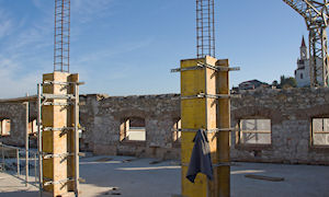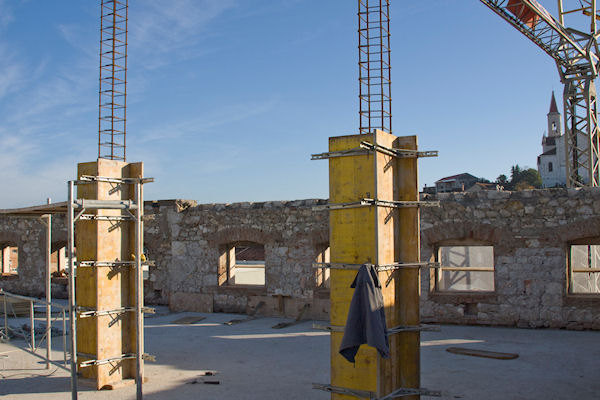 Metković, 12.11.2010. - Nakon što je izrađena posljednja katna AB ploča na građevini bivše Vage započeli su radovi na krovnoj konstrukciji. Radnici tvrtke 'MGA' trenutno grade stupove koji će nositi središnju gredu na koju će se naslanjati kosa krovna AB ploča.