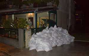Metković, 30.11.2010. - Obišavši večeras najugroženije dijelove grada vidjeli smo da situacija nešto gora nego prije nekoliko dana. Ipak voda ne raste toliko da bi noćas mogla ugroziti one u čije kuće do sada nije prodrla. Građani su, ipak, oprezni što smo mogli zaključiti po vrećama pijeska koje su pripremili za svaki slučaj.