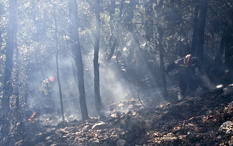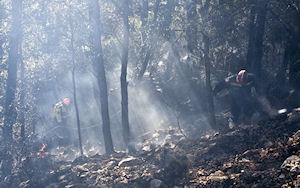 18.10.2011. - Dok su se metkovski vatrogasci borili s velikim požarom između Metkovića i Vida koji je ugrozio plastenike s povrtlarskim kulturama buknuo je požar na južnim padinama park šume Predolac.