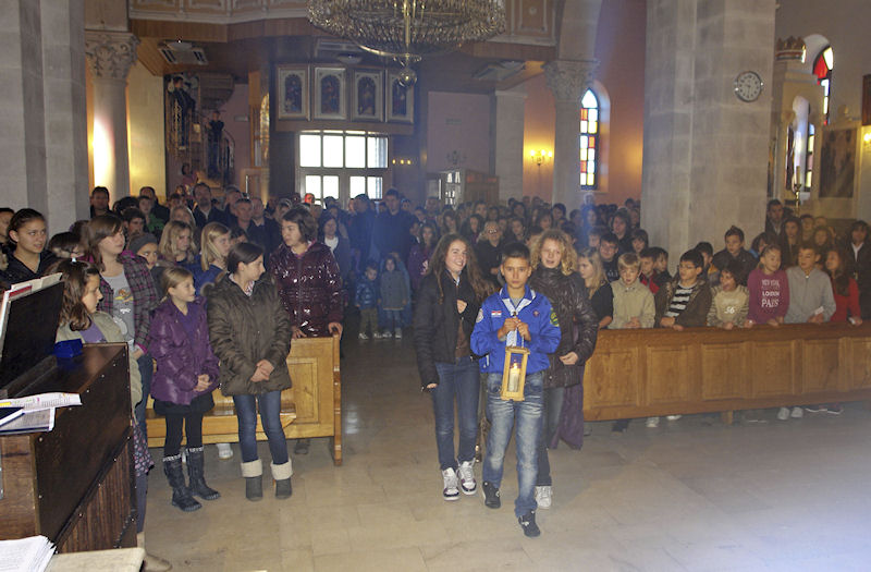 18.12.2011. - U crkvu Sv. Ilije danas je stiglo Betlehemsko svjetlo mira, a donijeli su ga metkovski izviđači iz Udruge izviđača Neretvanski gusar koji su ga jučer preuzeli u katedrali Uznesenja BDM (Sv. Duje) u Splitu.