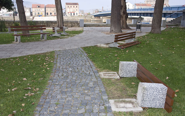12.12.2011. - Nakon određene stanke nastavljeno je prvenstvo u devastiranju gradskoga parka. Ovaj put na meti su bile klupe koje su, srećom, završile samo u knockdownu. Izgleda da bi i njih trebalo u kavez, kao i što je to učinjeno i sa svjetiljkama.