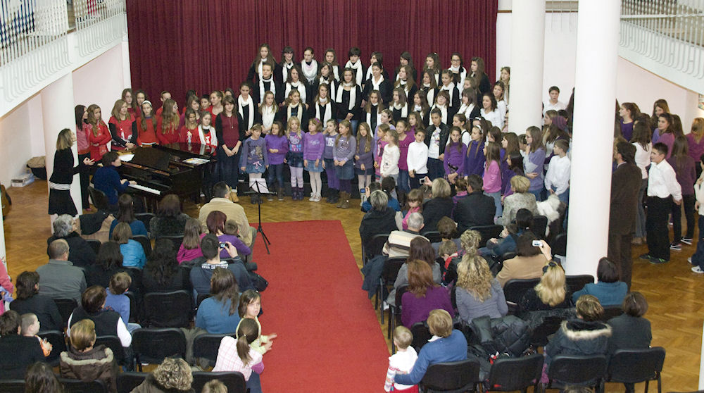 17.12.2011. - Na tradicionalnom Božićnom koncertu školskih zborova, sinoć održanom u Gradskom kulturnom središtu, nastupilo je pet zborova osnovnih i glazbenih škola iz Metkovića i Ploča. Skupa sa nastupom solista izvedeno je šesnaest popularnih božićnih pjesama sa svih strana svijeta, a za kraj svi su zajedno otpjevali hrvatsku Radujte se narodi.