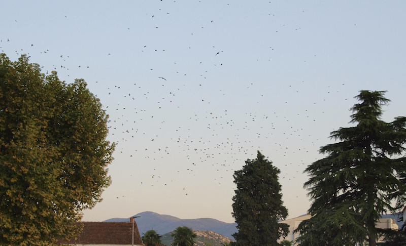1.8.2012. - Četiri platana u vrtu OŠ Stjepana Radića vjerojatno su najpopularnije prenoćište u gradu. Noć u njima provede možda i više od deset tisuća vrabaca.