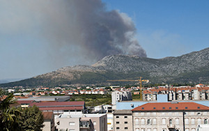 12.8.2012. - Veliki požar koji je jučer planuo kraj Komina i dalje se širi unatoč svim napornima gasitelja. Danas su ga gasila dva kanadera no vatra nošena vjetrom i dalje napreduje padinama Rujnice. Na terenu je 20 vatrogasnih vozila, ali zbog nepristupačnosti pomažu jedino zračne snage.