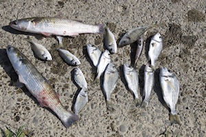8.8.2012. - Zanimljiv prizor zabilježili smo danas kraj Lučkoga mosta u Metkoviću. U vrši koju je ribar upravo izvadio bilo je petnaestak riba: od morskih cipola, šparića i maloga lubina pa do glavoča. Ni jedne riječne.