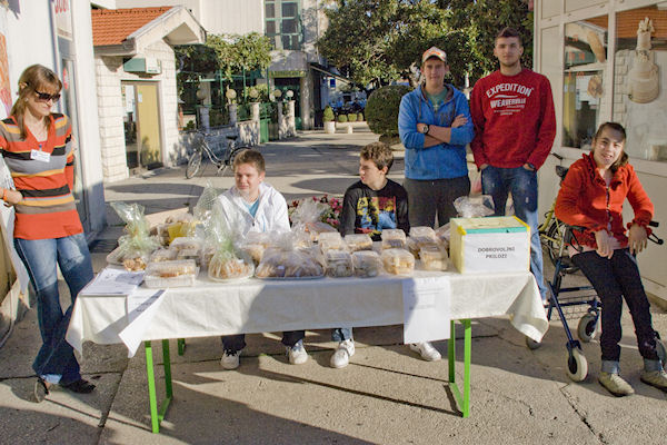 20.10.2012. - Udruga cerebralne i dječje paralize Leptirići iz Ploča danas je u središtu Metkovića povodom obilježavanja Dana kruha organizirala humanitarnu prodaju kolača što su ih u organizaciji prof. Maje Batinović skupa sa svojim roditeljima ispekli učenici Srednje škole Metković. Udruga se nedavno predstavila i na Danima Neretve u Zagrebu.