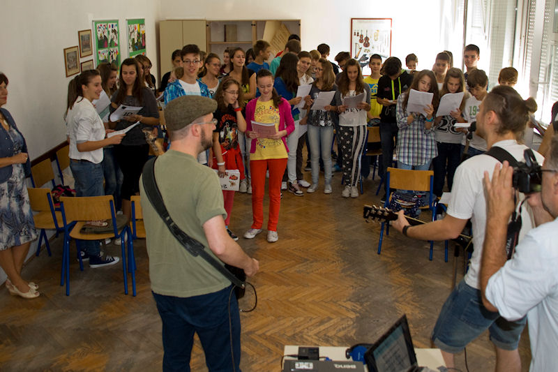 3.10.2012. - Zahvaljujući suradnji Goethe Instituta iz Zagreba i projekta Musicisthelanguage, Nico Rebscher i Michael Vinne iz rock skupine Lauter Leben iz Berlina danas su u OŠ Stjepana Radića održali kreativnu glazbenu radionicu Ritam i poezija.