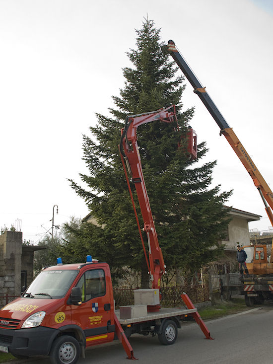 22.12.2012. - Jutros su djelatnici JVP Metković u Hercegovačkoj ulici ispilili veliku jelu koja će biti postavljena i okićena na Trgu kralja Tomislava. Dvanaestmetarska jela dar je obitelji Živka Jurkovića.