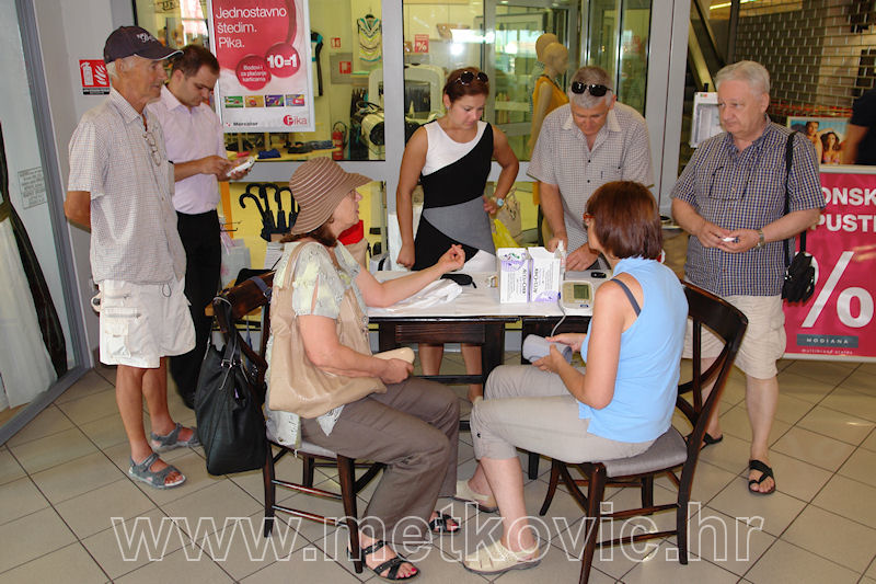 20.7.2013. - Povodom Sv. Ilije Udruga dijabetičara grada Metkovića jučer je u TC Mercator provela akciju mjerenja šećera u krvi i krvnoga tlaka, koju je, kao i do sada, podržala Patronažna služba Doma zdravlja Metković.