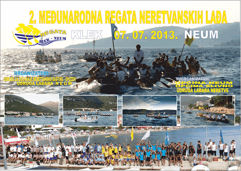 7.7.2013. - Danas će se na stazi od Kleka do Neuma veslati 2. međunarodna regata lađa Klek – Neum na kojoj će sudjelovati 20 lađarskih posada. Program počinje na plaži u Kleku okupljanjem lađarskih ekipa, a start utrke je predviđen u 18.30. Organizatori regate su Udruga za očuvanje neretvanske baštine Opuzen i Udruga lađara Neum.