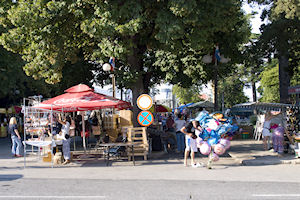 19.7.2013. - Trg i okolno područje pomalo poprima svoj prepoznatljiv izgled, sukladan sutrašnjem Blagdanu. Čini se da će štandova biti nešto manje. Je li tome kriva kriza ili mala crna naprava u lijevome kutu fotografije s konjima, koju je vlasnik obrta izvjesio – Liniću ne trebalo. Ujutro ćemo otići vidjeti pošto fiskalizirana janjetina.