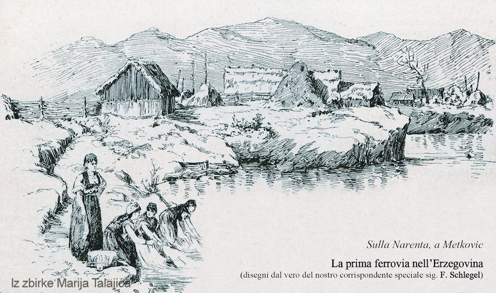 1.10.2013. - Mario Talajić nam je iz Zagreba poslao zanimljivu grafiju kojoj u nadnaslovu stoji Na Neretvi u Metkoviću, u naslovu Prva željeznica u Hercegovini, a u podnaslovu stvarni crtež našeg specijalnog dopisnika g. F. Schlegela).