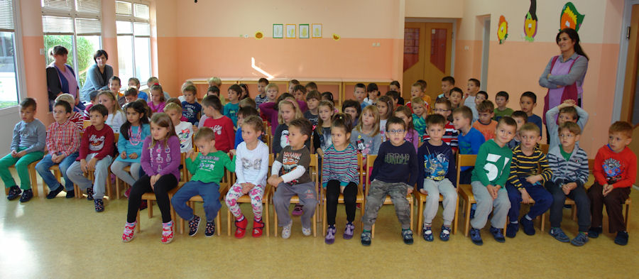 24.10.2013. - Nakon što su u Središnjem vrtiću obilježili Dane kruha i zahvalnosti za plodove zemlje, dvije skupine vrtićana u pratnji svojih teta, Karmen Laskač i Sanje Obradović, te ravnateljice Vrtića Mire Penavić posjetili su Dnevni boravak Udruge Otac Ante Gabrić.