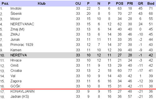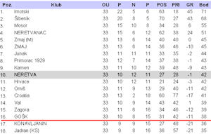 24.5.2014. - Današnjom pobjedom protiv HNK Zmaj u Makarskoj u 33. kolu 3. HNL – jug, nogometaši NK Neretve su se sa 42 boda popeli na 10. mjesto i osigurali ostanak u ligi. Posljednje, 34. kolo igraju na domaćem terenu protiv Jadrana iz Kaštel Sućurca, koji je posljednji na tablici. Nadamo se da će naši uknjižiti barem minimalnu pobjedu i svrstati se među klubove koji nemaju negativnu gol-razliku.