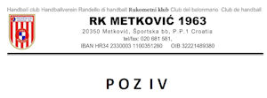 26.5.2014. - Upravni odbor Rukometnog kluba Metković 1963 poziva roditelje dječaka registriranih za Rukometni klub Metković 1963, kao i roditelje svih onih dječaka koji se žele aktivno baviti rukometom, da dođu na sastanak koji će se u Zgradi političkih stranaka u Ulici kralja Zvonimira u Metkoviću održati dana 28. svibnja 2014., srijeda, s početkom u 20 sati i 30 minuta. Na sastanku ćemo vas upoznati s planom i programom rada, kao i s osobama koje će u rukometnom klubu Metković 1963 raditi s djecom. Dodatne informacije na: 098 1787 999 ili 098 488 755.
