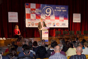 2.5.2014. - Kandidati za predstojeće EU izbore s koalicijske liste SDP-HNS-IDS-HSU Neven Mimica i Oleg Valjalo danas su se u Hotelu Narona predstavili članovima tih stranaka i građanima Metkovića, pokušavajući im objasniti zašto je „Važno tko nosi tvoj glas u Europu“.