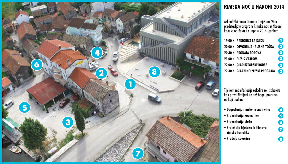 27.7.2014. - Preksinoć je Vid ponovno jednim dijelom postao Naronom. Četvrti put zaredom pred Arheološkim muzejom Narona i na okolnim prostorima održana je Rimska noć u Naroni na kojoj se okupilo dosta domaćega svijeta, ali i turista. Na mrežnome mjestu Vida pogledajte još fotografija.